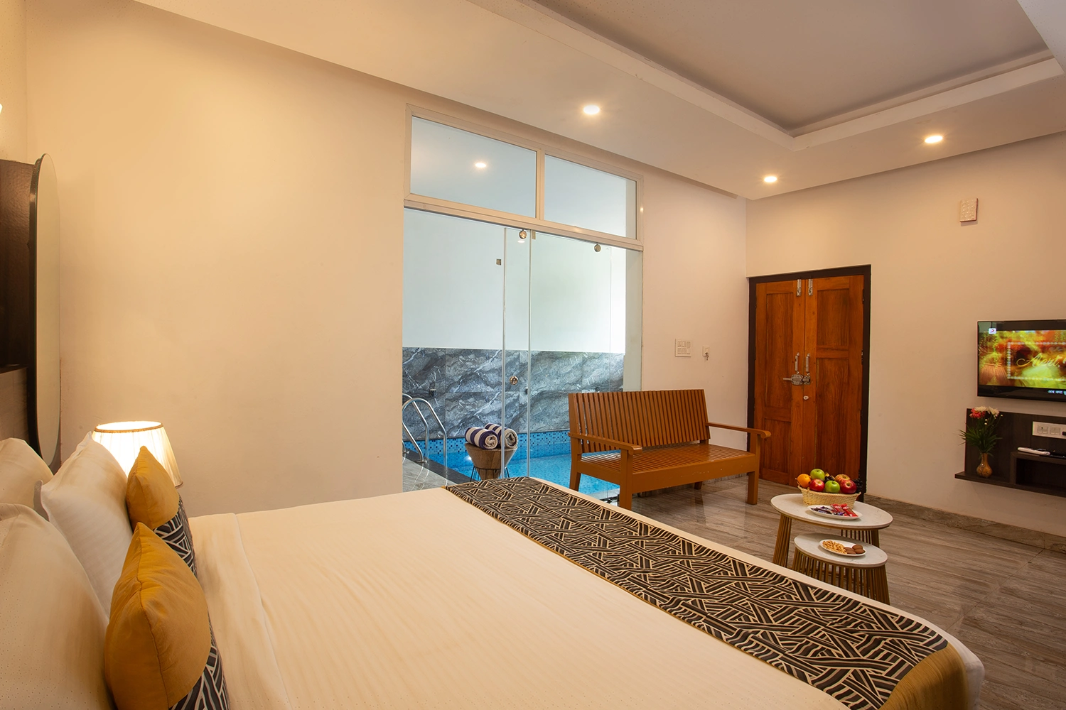 We are offering a home away from home for you, our Breeze Single Villas are pleasant with king size beds overlooking the stream and hanging bridge. The main facilities here include Complimentary breakfast, Coffee maker, Free Wi-Fi, Cubical bathroom, safe locker, LCD TV, Telephone extension facility, 2l Mineral water per day, Laundry facility, Room service. The longer you stay, the better it gets! Come, experience our Breeze Single Villas to know why we are one of the best resorts in Kerala!